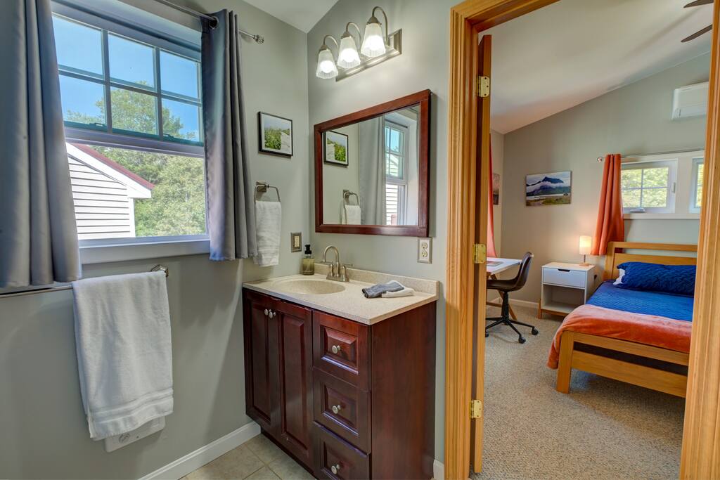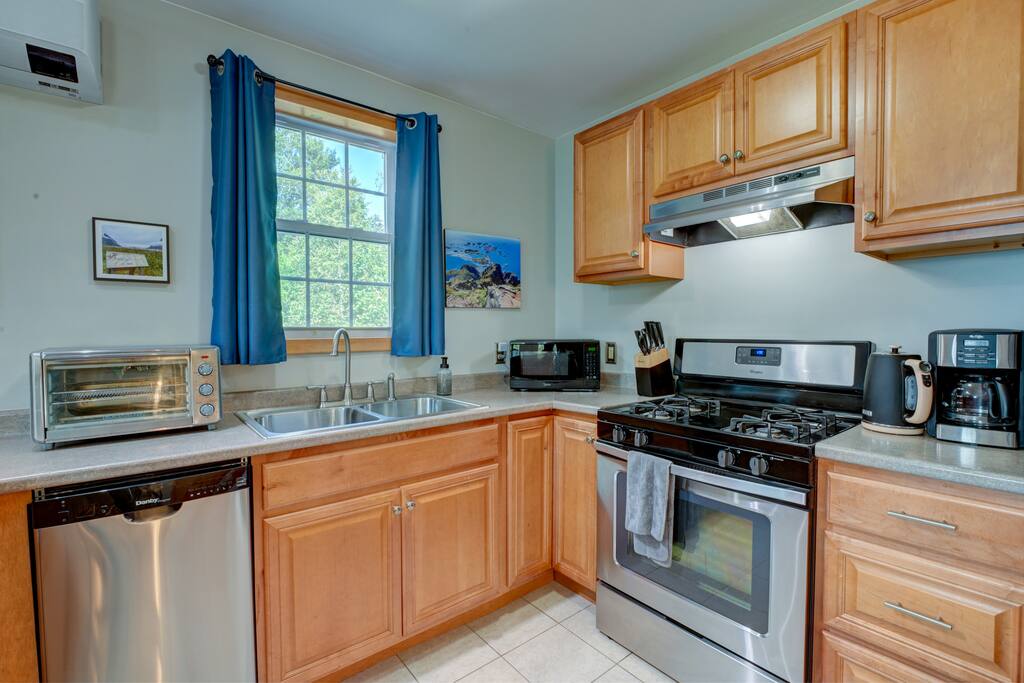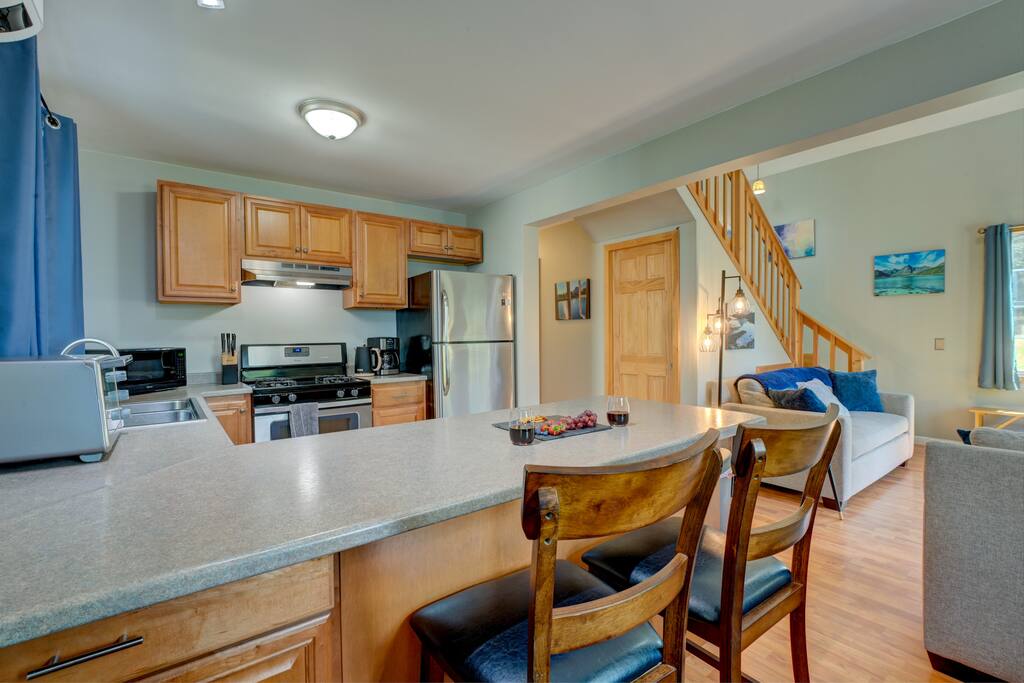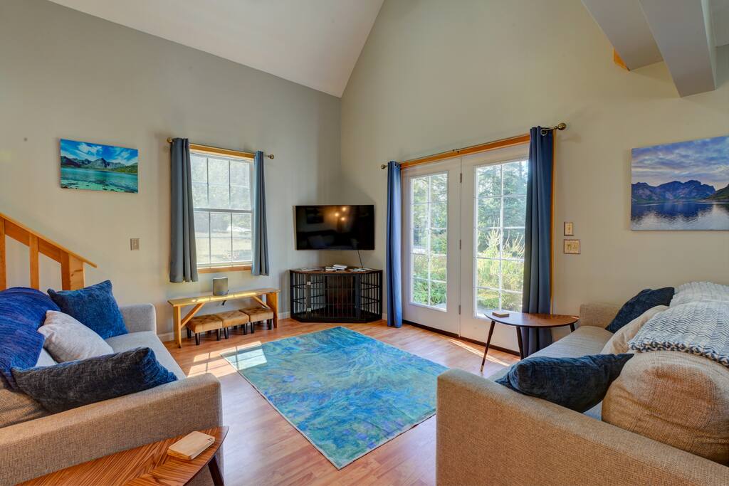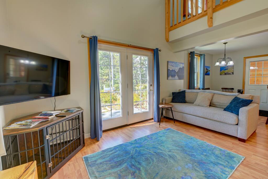 The dog-friendly Hytta House is a 2-bed 2-bath retreat. Downstairs there is a bedroom & bath, with an open concept kitchen and living room. The cathedral ceiling leads to a loft upstairs with a fold out couch, private master bedroom, and full bath. Book this unit for the house only. Other guests may book the 1-bed 1-bath Hytta apartment (separated from the house by a mudroom). The yard may be shared. Search for Hytta Duplex to book both the house and apartment for a private yard and space.