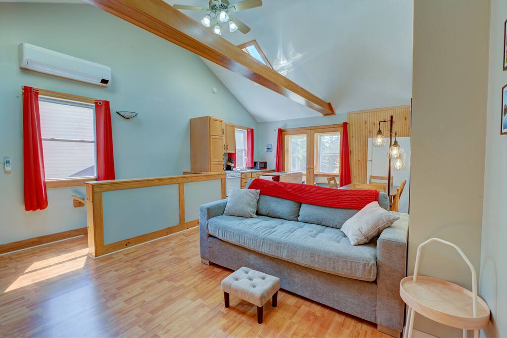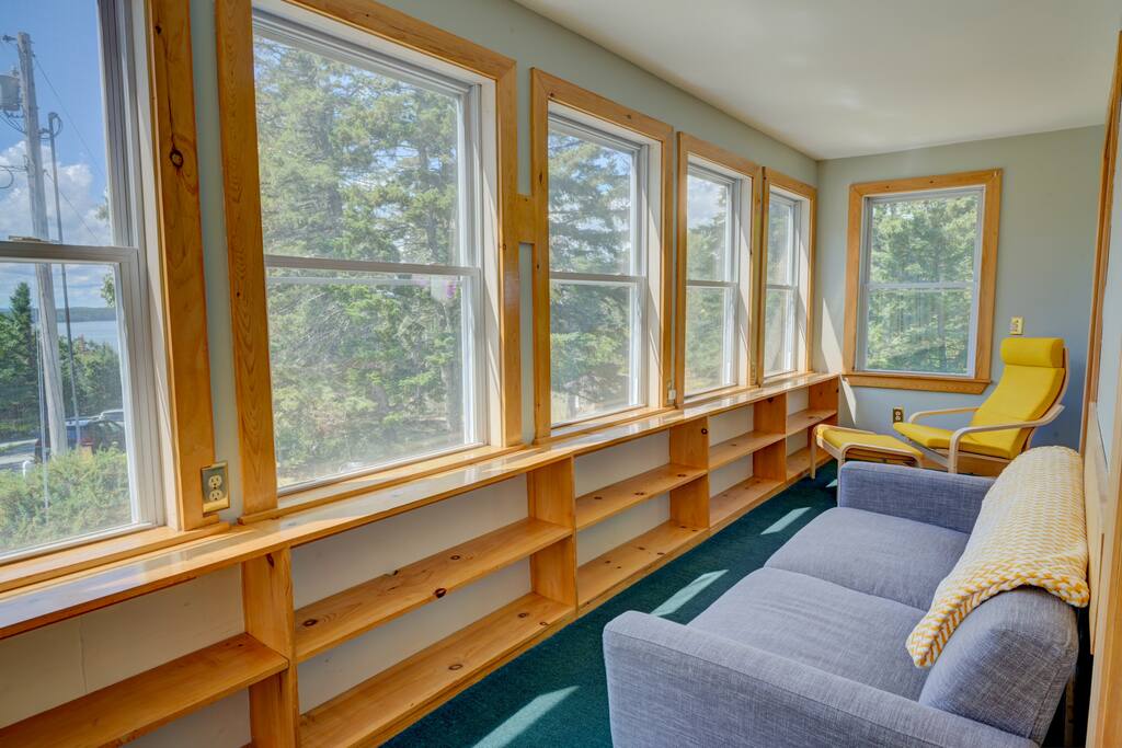 The Hytta Loft Apartment is your gateway to the Schoodic Penninsula of Acadia National Park and Downeast Maine, or take the ferry to Bar Harbor. Just 2 miles off of Rte 1, this spacious, serene space boasts cathedral ceilings and a large 3-season porch with ocean views. The mini kitchen is well stocked. Note that this unit is private, but shares a mudroom entryway, yard, grill, and firepit with the Hytta House (to book both units for a larger group, search for the Hytta Duplex).