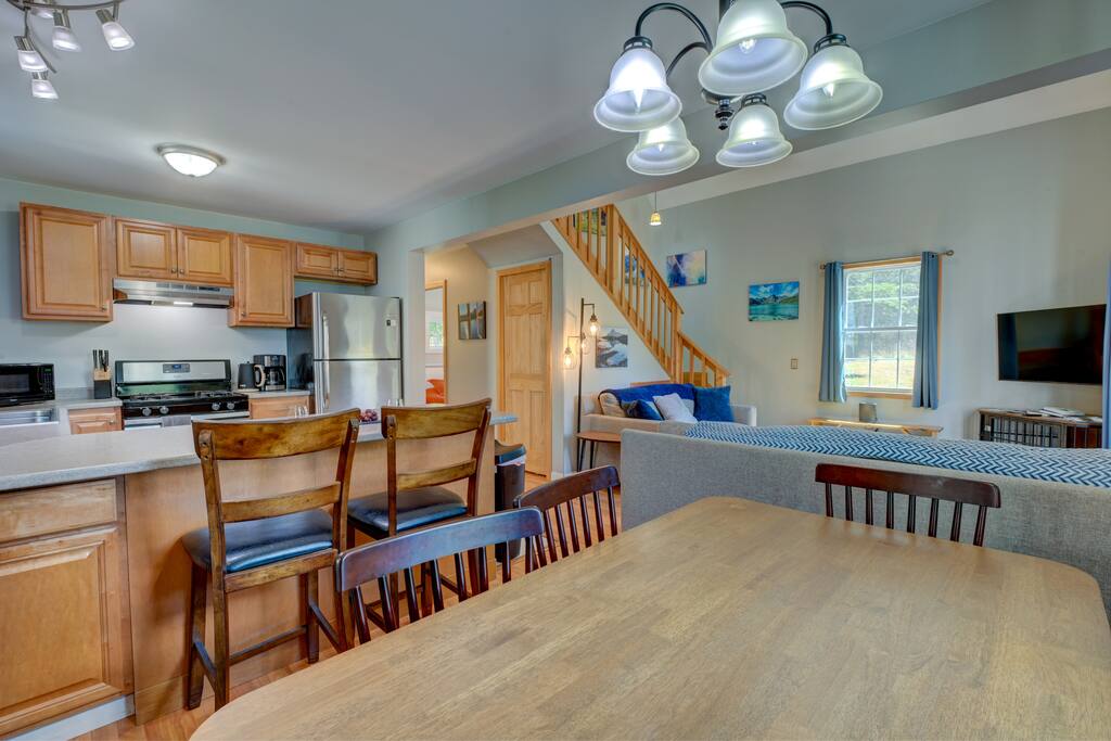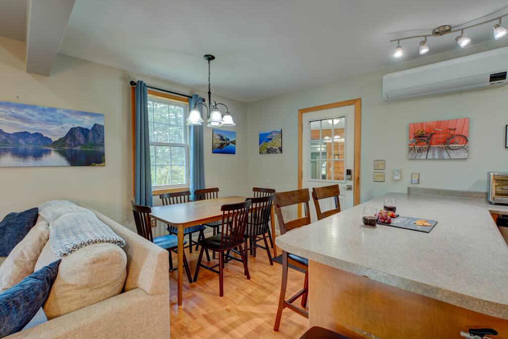 The Hytta duplex was inspired by a Norway trip where mountains and ocean meet as they do in Acadia. Escape the traffic and crowds. The house with an in-law apt allows guests to connect yet have their own retreats . A large yard has plenty of space for your dog(s). This gateway to Downeast Maine is minutes from the rugged cliffs and mountains of Acadia's Schoodic Peninsula. Take the ferry to Bar Harbor (10 mins from the house), then take the free Island Explorer bus to Acadia's popular spots.