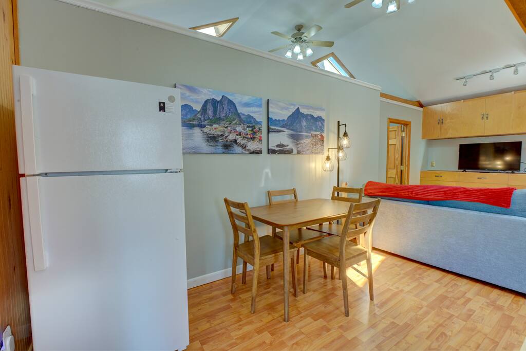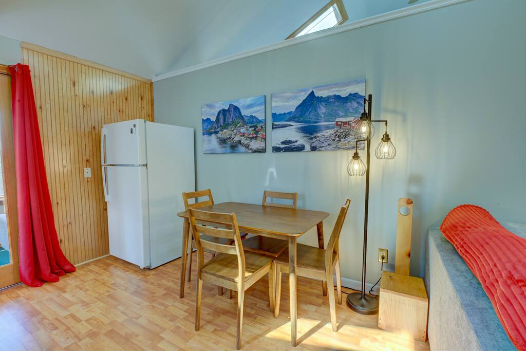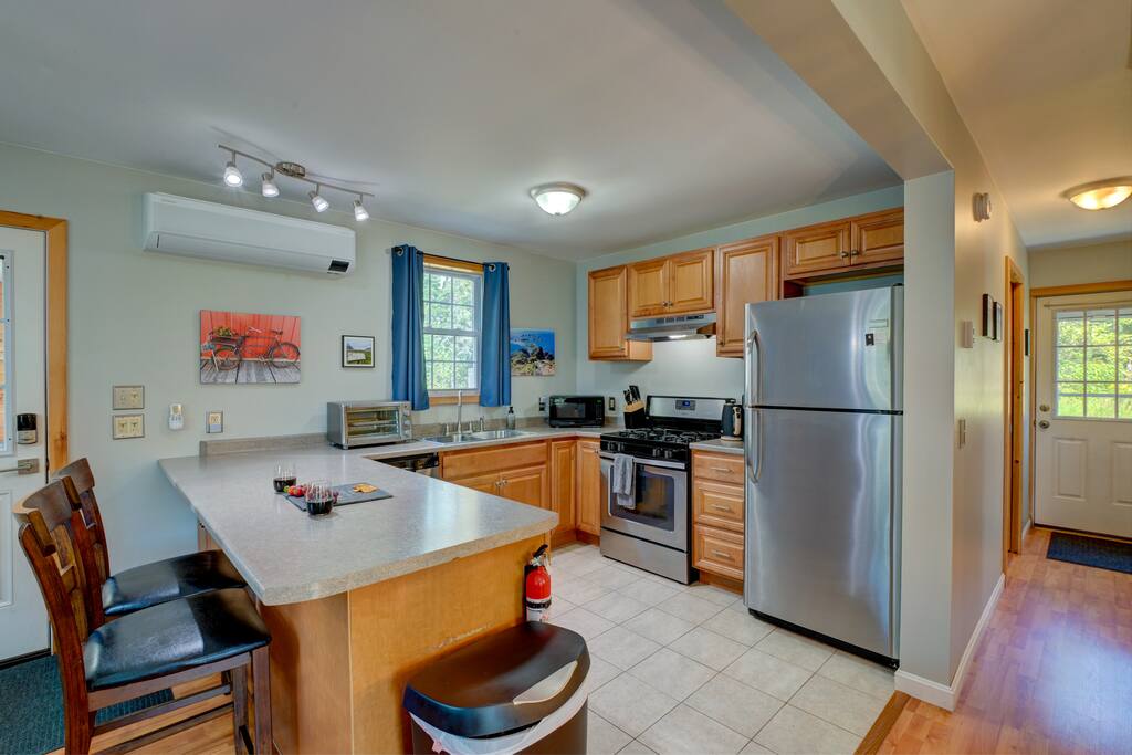 TThe Hytta Duplex includes both the House and Loft apartment with a total of 3 full bedrooms and 3 full bathrooms with a large, private yard and firepit area. This property was inspired by a trip to the Lofoten Islands in Norway where peace, simplicity, and tranquility are at the forefront. If you are traveling with a smaller group, please search AirBNB for the Hytta House or Hytta Loft Apartment to rent one only of the units at a discount price. The Hytta House is a 2 bedroom 2 bath home. A bedroom (queen bed) and one full bathroom is on the first floor which makes it ideal for folks who struggle with stairs. The second floor has a master bedroom with a king bed and connected full bath. A desk can be moved from the master bedroom to the loft area above living room for a work space overlooking the ocean. Or move the desk to the master bedroom to make room to open up the queen-sized sofa bed. The Hytta Loft Apartment is connected to the house by a mudroom. This 1 bedroom 1 bath fully stocked space is above the utility room/garage area with its own mini but full kitchen. There is additional sleeping space in the Hytta Loft with a pull out sofa bed. The cathedral ceilings and ocean views from the porch are stunning! Note that the steps leading to the Hytta Loft are a bit narrow and steep and not appropriate for pets or people with mobility issues. A large porch overlooking the ocean (Frenschman's Bay) is accessed through the Hytta Loft Apartment. The property is dog friendly with a large private yard and two crates available. We do not charge pet fees (but will add on a cleaning fee at the end of your stay for any pet messes/excess hair left behind). These separate but connected units are ideal for large groups that want to be together but also have their own space at the end of the day. It is not appropriate for parties, and if everyone is gathered in the main house it will definitely feel cozy. There are three refrigerators and two sets of washer and dryers. Maine weather can be unpredictable and the entire home is protected by a back-up standby generator which will kick on and off automatically as needed if there is a power outage.